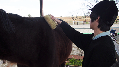 入会したら、まずは馬の手入れをおぼえましょう!