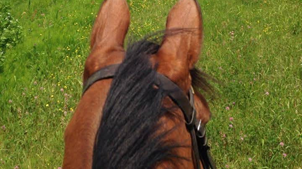 馬の歩く速度や揺れに慣れたら、止める練習をします。止めるのは両方の手綱を一緒に引っ張れば止まってくれます。